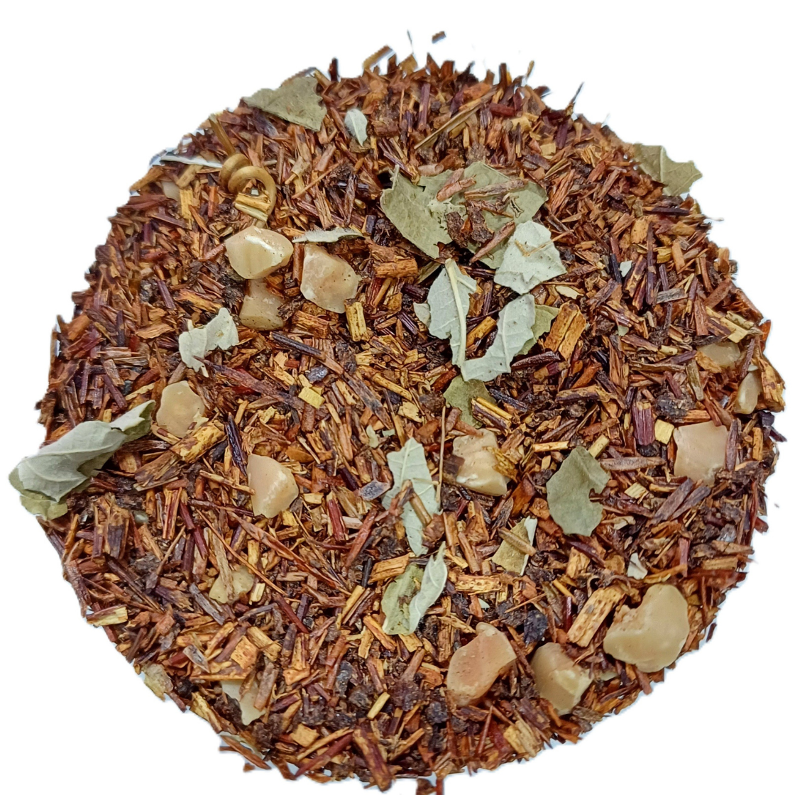 Infusión aromática y naturalmente dulce, de cuerpo redondo y notas cálidas con un matiz vegetal delicado; el rooibos aporta una alta concentración de antioxidantes y compuestos con potencial antiinflamatorio que contribuyen al equilibrio metabólico y al apoyo en la regulación de la glucosa dentro de un estilo de vida saludable, mientras que la hoja de fresa, rica en taninos y flavonoides, ayuda a la digestión y a la salud bucal; la almendra complementa con compuestos fenólicos y grasas saludables que favorecen el bienestar general y aportan una sensación reconfortante en boca. Naturalmente libre de cafeína, es ideal para relajarse y acompañar la digestión en cualquier momento del día.
